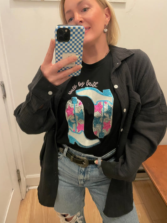 Sequin Walk By Faith Tee
